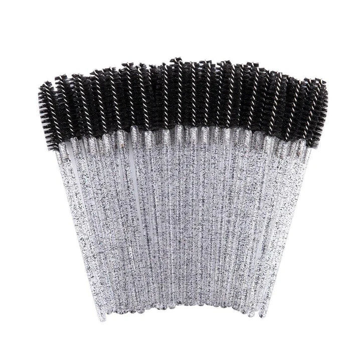 Wet + dry use for lashes and brows. 50 brushes per pack.